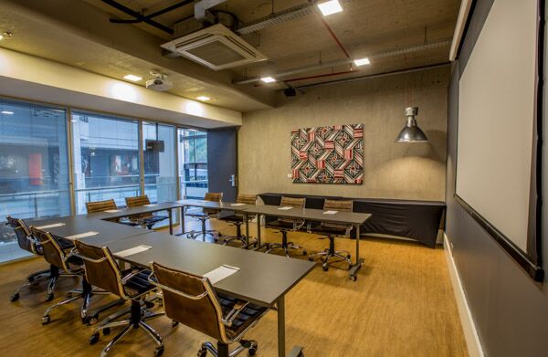 É um espaço moderno e funcional, ideal para reuniões e encontros de